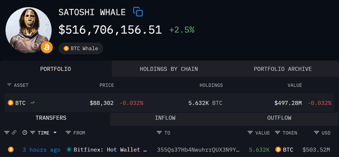🚨 BREAKING: SATOSHI-ERA WHALE JUST BOUGHT 5,632 $BTC WORTH $503.5M THIS WALLET BOUGHT EVERY SINGLE DIP STARTING FROM 2017 HE 100% KNOWS SOMETHING!!