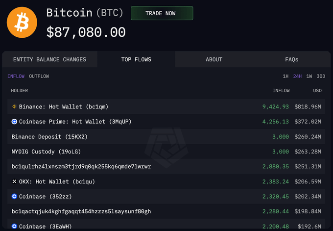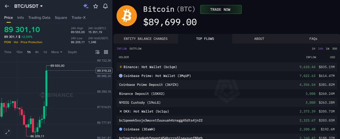 🚨 BREAKING: HUGE FUNDS AND WHALES BUYING $BTC AHEAD OF TRUMP'S SPEECH: BINANCE BOUGHT 9,424 BTC COINBASE BOUGHT 4,256 BTC OKX BOUGHT 2,383 BTC RANDOM WHALES BOUGHT 15,612 BTC NYDIG BOUGHT 3,000 BTC THEY BOUGHT OVER $2B WORTH OF BITCOIN TODAY THIS IS PURE MANIPULATION!! 👀 twitter.com/DeFiTracer/status/...