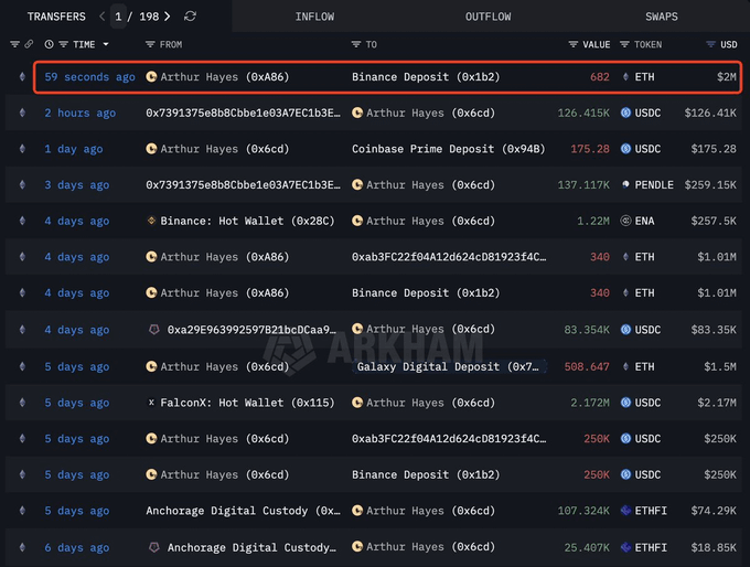 🚨 BREAKING: ARTHUR HAYES DUMPING MILLIONS WORTH OF $ETH AND $ENA HE JUST DUMPED 682 $ETH WORTH $2M AND KEEPS SELLING MORE WHAT IS GOING ON?? 👀