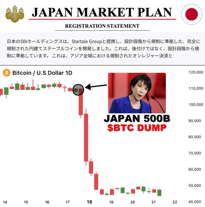 🚨 JAPAN SECRETLY DUMPING MARKET It hikes rates by 75bps and sell $500B ETF I analyzed all market data and was shocked... Here's what's happening and why $BTC going to $50,000 🧵👇