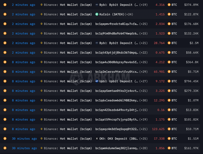 🚨 BREAKING: HERE'S EXACTLY WHY BITCOIN JUST DUMPED: BINANCE SOLD 6,379 BTC COINBASE SOLD 11,512 BTC ANCHORAGE SOLD 2,636 BTC RANDOM WHALES SOLD 14,219 BTC WINTERMUTE SOLD 1,572 BTC THEY JUST SOLD OVER $3.5B WORTH OF $BTC IN HOURS THIS WAS COORDINATED DUMP!!