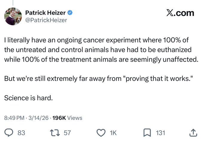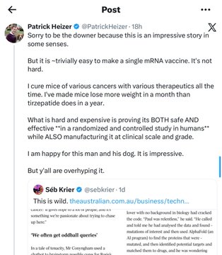 “it’s trivially easy to make an mRNA vaccine to cure cancer” followed by “but we’re still extremely far from proving it works” is not the flex you think it is