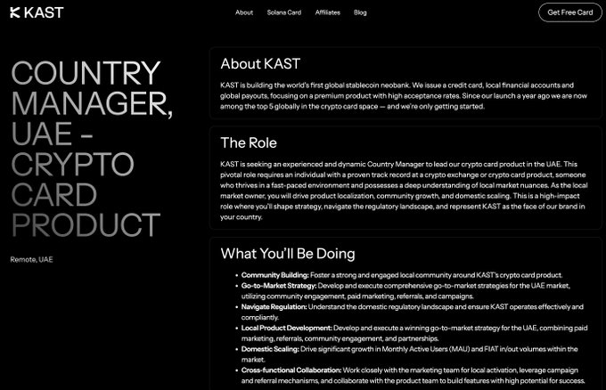 the world's best crypto card is hiring a UAE general manager. if you think you've got what it takes then drop your profile in the replies. this is a huge role and requires regional knowledge, financial services experience and a founder mindset