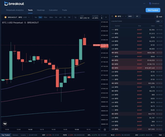 $BTC just took out yesterday's high. Shorts got washed across every exchange at once. Most traders only saw one of them. Breakout's liquidation feed shows all of it. Free. http:/tools.breakoutprop.com