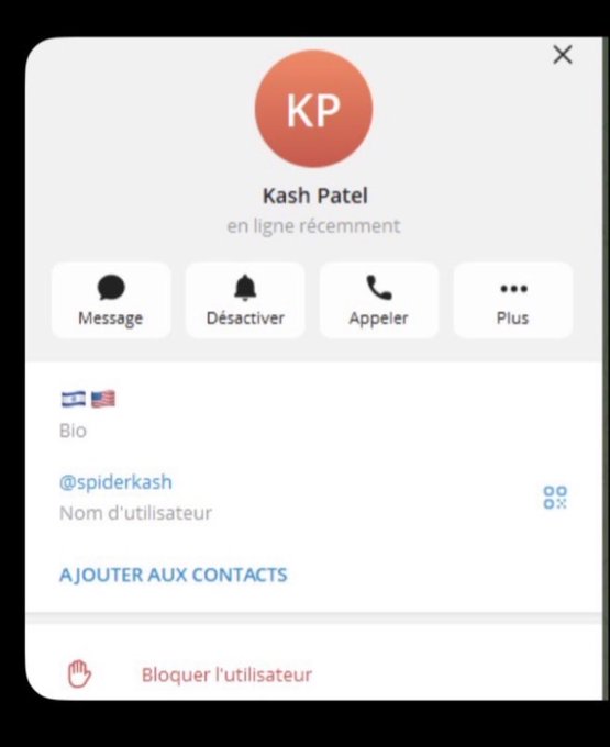 Kash Patelโs telegram account got hacked and he has an Israeli flag in his bio even before the U.S. flag Very informative..