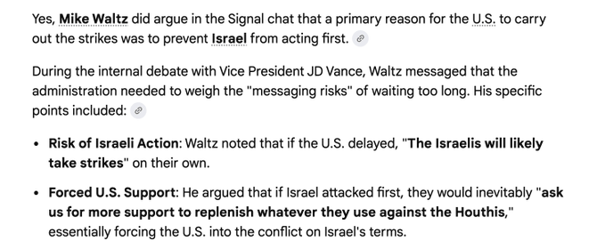 Forgotten now, but Marco Rubio's comment that essentially the US had to attack because Israel was going to attack was remarkably similar to Michael Waltz's comment during Signalgate on Yemen. Weird. Why can't the US tell Israel "no"?