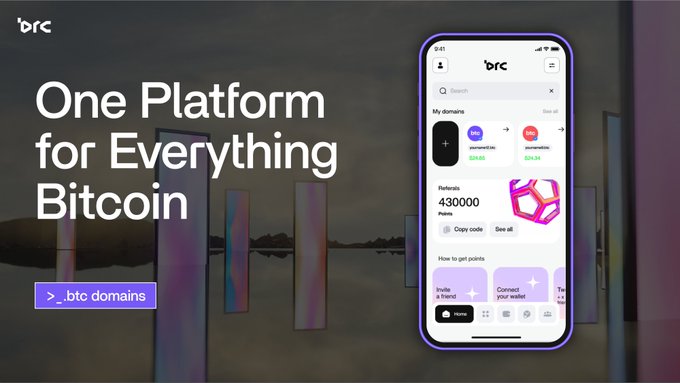 « BRC App unifies access to Bitcoin-based innovations » Allowing users to manage and interact with BRC20 tokens and .btc domains through one streamlined platform. http:/brcapp.com