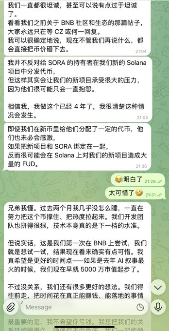 @sadd_asd77675 and @arych_kun also noticed this last night and asked if I was aware of the team's situation. After asking the team, I realized they definitely wanted the project to continue, but the environment on BNBchain was terrible; nobody cared about your product. I suggested they try developing on Solana. "Brother, it's really difficult on BNB right now. Our reach has reached this point. The BNB team has been ignoring us, and He Yi has already replied. There's basically nothing left to do, and BTC is also falling. We have indeed developed very strong technology, but unfortunately, the reality on BNB is: you need YZI Labs' endorsement first, complete **MVB** first, and then start the project to have a better chance of being seen."