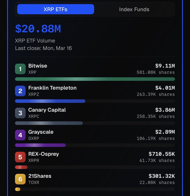 Closed! Back over $20Million for the XRP ETF’s Price brings the volume as Bitwise XRP ends being up 8.92% for the day! twitter.com/ChadSteingraber/st...