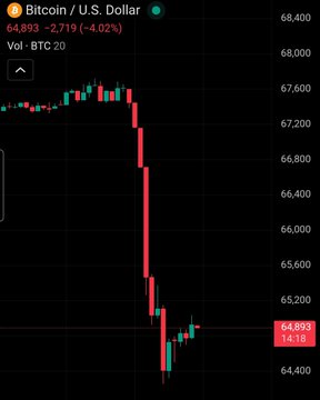 Crypto bleeds again! 🔻 Bitcoin falls below $65k Ethereum dumps to $1850 Around $400M worth of liquidation in last 4 hours!
