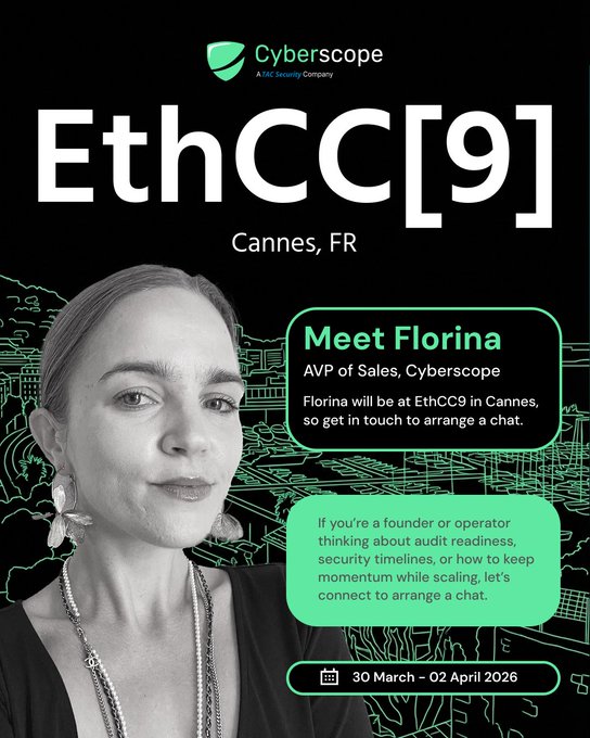 Our AVP of sales, Florina, will be attending @EthCC in Cannes, France from March 30 - April 02. If your team is reviewing smart contract security and the impact of post-launch changes, get in touch. Hit the link below to schedule a chat.