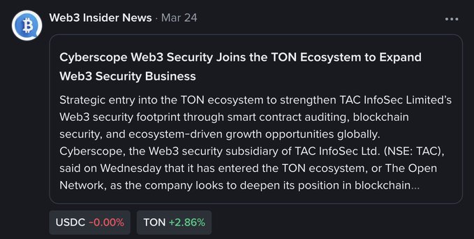 Cyberscope is now part of the @ton_blockchain ecosystem, strengthening our presence across high-growth Web3 networks. It marks another step in our focus on helping serious builders scale with stronger security foundations. Read more here via @binance: binance.com/en/square/post/305...… #TON #Web3Security
