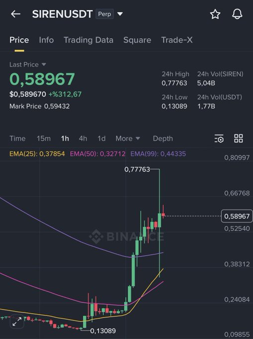 Everyone is talking about $SIREN now but yesterday i gave you @ 0.17 around Enjoy And follow me for more Open notifications