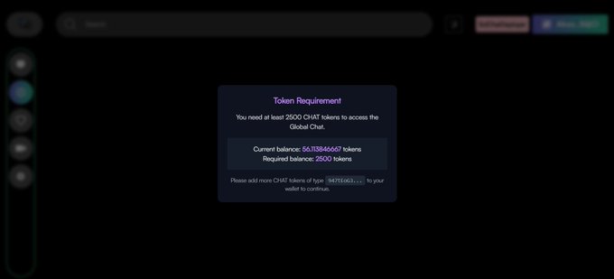 We've implemented Token Gating for Global Chat access. To view or send messages in the Global Chat, users must now hold at least 2,500 $CHAT tokens. Dapp: solchat.app twitter.com/SolChatCoin/status...