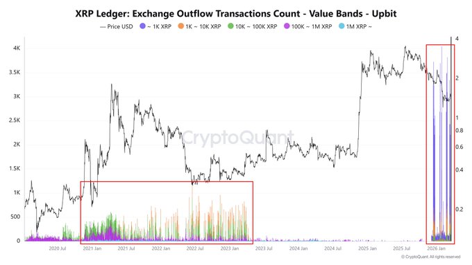 Currently, a large number of $XRP withdrawal transactions is occurring on Upbit.