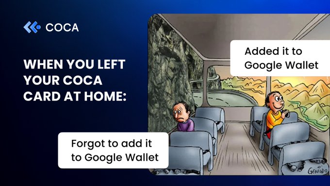 Traveling without your COCA Card? No problem! 😎 Add your COCA Visa to Google Wallet — pay anywhere, anytime. This November, every tap counts! Spend with Google Pay, earn up to 8% cashback, and get a chance to win $50 in USDC/EURC 💰 🗓️ Until Nov 30 — Tap. Pay. Win! 👉