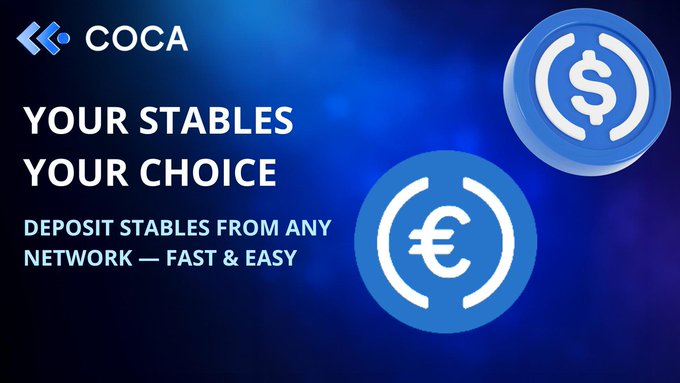 💳 Be stable — pay with COCA Deposit your crypto (especially stablecoins) to start using COCA for payments. Supported stablecoins & networks: 💶 EURS — Ethereum, Polygon 💶 EURC — Ethereum, Base 💵 USDC — Ethereum, Polygon, Stellar, BNB Smart Chain, Avalanche C-Chain, Arbitrum,