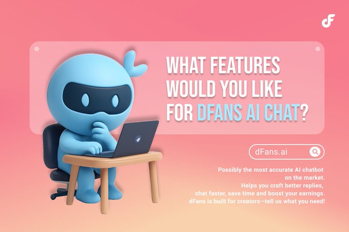 #dFans AI Chat is constantly upgrading... 🔥🔥#Creator, we need your voice! Tell us what features you want in dFans #AIchatbot . We're here to help boost your income. 👉If you haven’t tried it yet, search for http:/dFans.ai to use it for free!