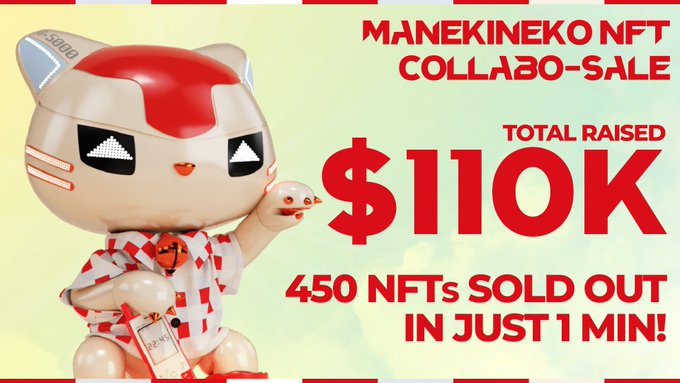 / 🚀 SOLD OUT IN JUST 1 MINUTE! $110K TOTAL RAISED!🎉 #SyFu × #KDDI Collaboration MANEKINEKO NFT sale \ #SyFu × #KDDI Collaboration MANEKINEKO NFT sale on May 13th sold out in an incredible 1 minute, raising a total of $110K (143% of target)! 🔥 Sold out in 1 minute: 450