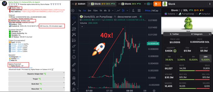 easy to catch the hype and score a 40x with Alpha Radar Solana100x AI agent 👍 $Glonk #glonk twitter.com/alpharadarai/statu...