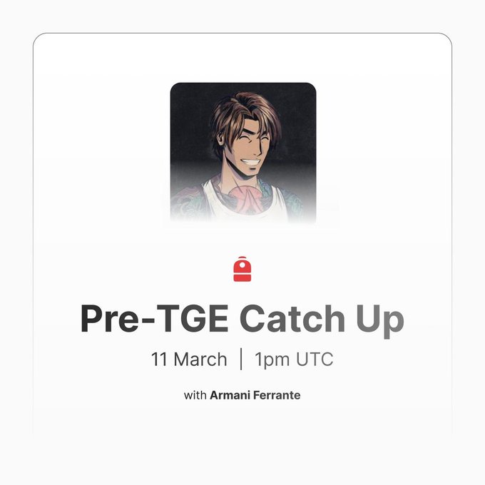 Pre-TGE catch-up with @armaniferrante. Tomorrow. Link and Location to follow 🎒