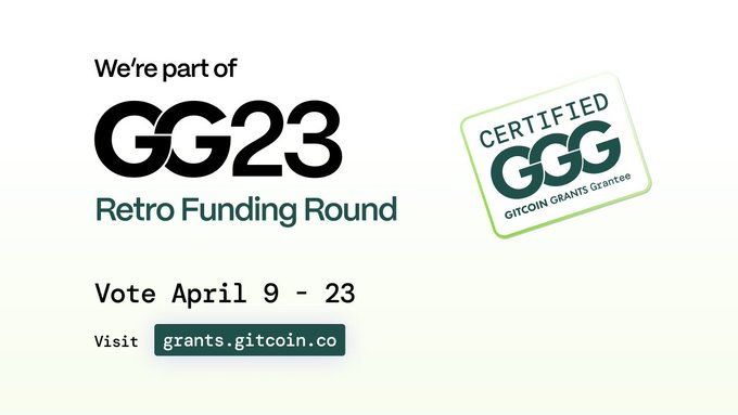 🎉 Gitcoin Retro Funding We're excited to announce that we've been selected as one of the top 30 mature OSS projects in @gitcoin's inaugural Retro Funding Round #GG23! Go and cast your vote, no donation required beta.rf.vote.gitcoin.co/#/4216...