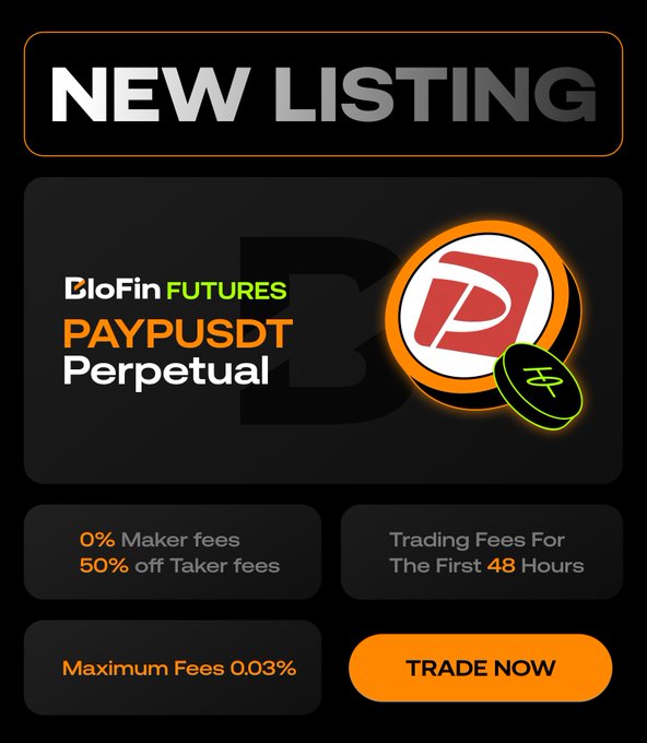 #BloFinFutures will list the $PAYP-USDT Perpetual Contract 🔴 Trade and take advantage of: ✅ 0% Maker Fees ✅ 50% off Taker Fees Details: support.blofin.com/hc/en-us/ar...…