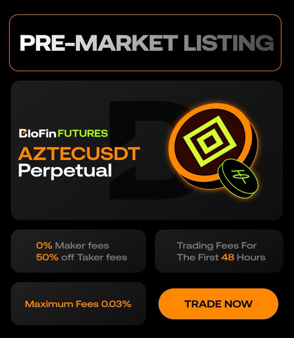 #BloFinFutures listed the $AZTEC-USDT @aztecnetwork Perpetual Contract in BloFin pre-market trading 🔥 Trade to take advantage of: ✅ 0% Maker Fees ✅ 50% off Taker Fees 🔗 Details: support.blofin.com/hc/en-us/ar...…