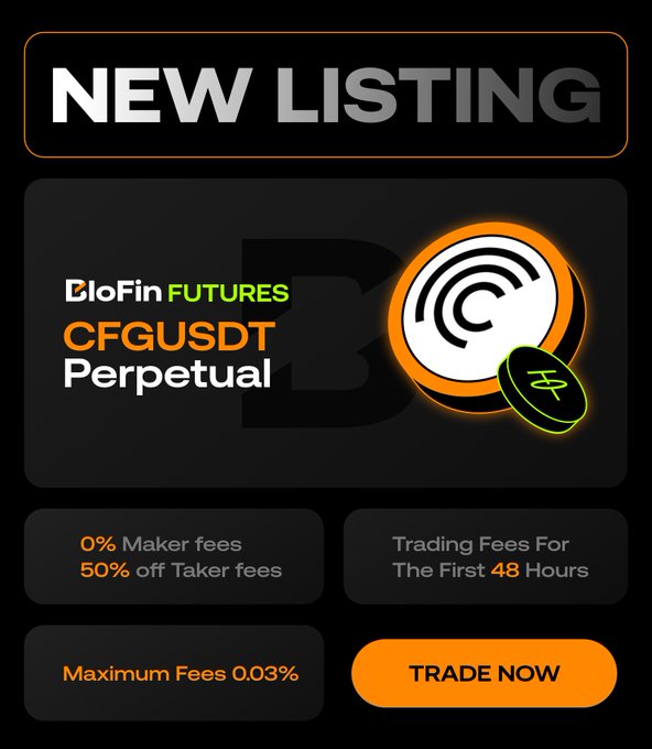#BloFinFutures will list the $CFG-USDT @centrifuge Perpetual Contract 🔥 Trade to take advantage of: ✅ 0% Maker Fees ✅ 50% off Taker Fees Details: support.blofin.com/hc/en-us/ar...…