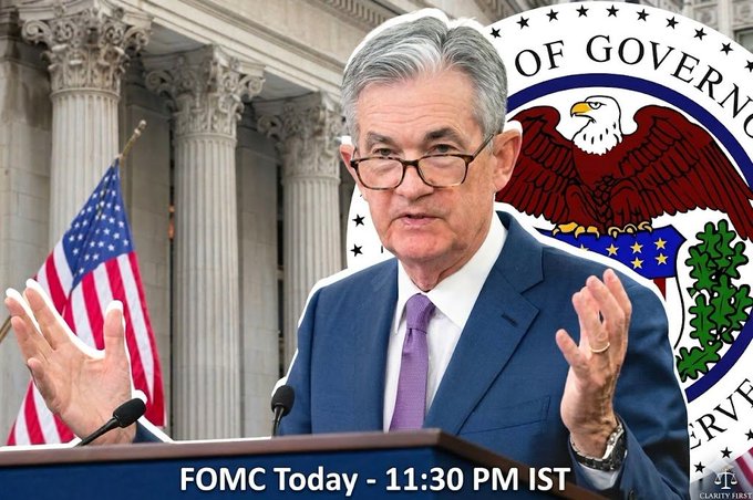 FOMC decision at 11:30 PM IST today, followed by Powell's press conference at 12:00 AM IST (19th march).