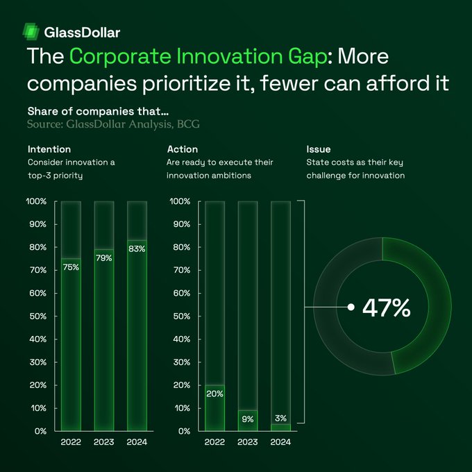 👀 83% of companies say innovation is a top priority. But only 3% are actually ready to execute? Oh, and 47% say cost is the blocker. 👋 How about innovation that saves you money? --> Check out @camino_network - the #CaminoMessenger saves #travel distribution costs by up to