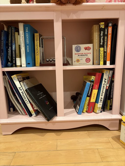 Back in my childhood bedroom for the first time in over a year. My bookshelf from when I was >17 was stacked!