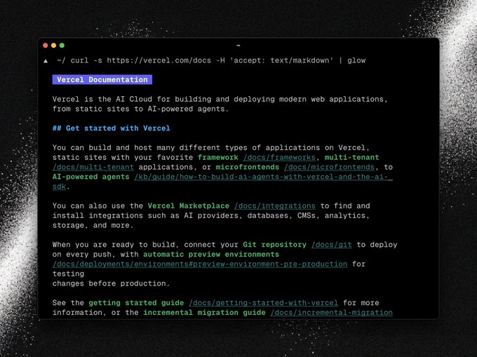 You can now 𝚌𝚞𝚛𝚕 -𝙷 '𝚊𝚌𝚌𝚎𝚙𝚝:𝚝𝚎𝚡𝚝/𝚖𝚊𝚛𝚔𝚍𝚘𝚠𝚗' the @vercel docs: