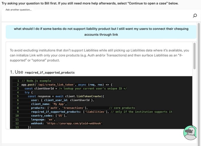 Absolutely love @Plaid's AI bot that helps me navigate through all the obstacles in their apis