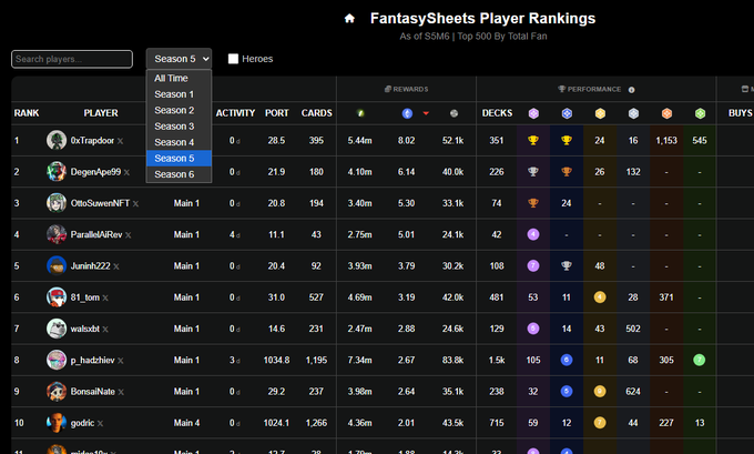 Last season @0xTrapdoor won 8 eth , ~ 6% of all eth rewards distributed. @p_hadzhiev won the most $FAN with 7.3m and frags with 83.8k