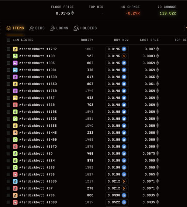 mferdickbutts are up +119.02% over the past week looks like nfts are making a cumback twitter.com/cryptomfer69/statu...