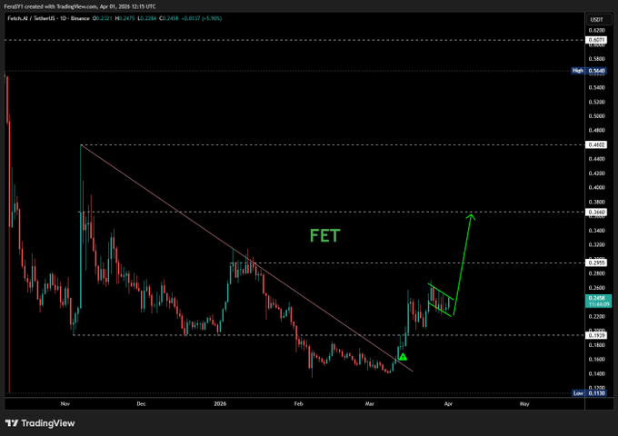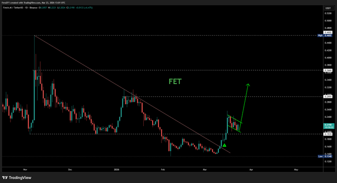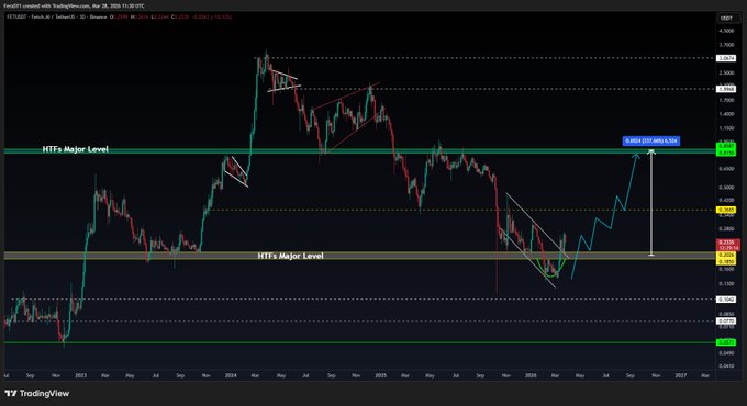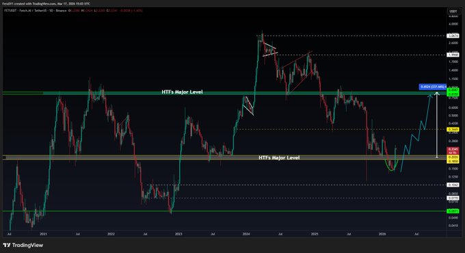 #FET Zoom Out ! This breakout matters because $FET just reclaimed a major HTF level at $0.2 That opens the door to the next major Target: $0.85 4X potential ! #FetchAi #crypto twitter.com/CryptoFeras/status...