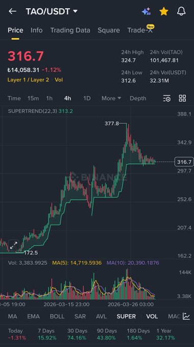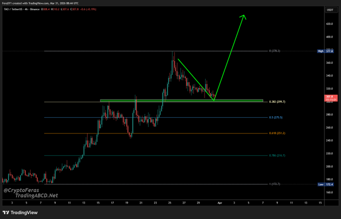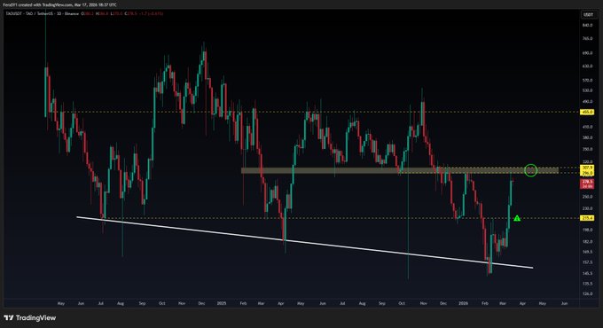 #TAO 300$ target hit 🎯 longs to take profits shorts gonna be careful, #Ai narrative is on fire, I wouldn't try this. Fresh longs? wait clean flip of 307$ then long to 455$ $TAOUSD #Trading $TAO twitter.com/CryptoFeras/status...