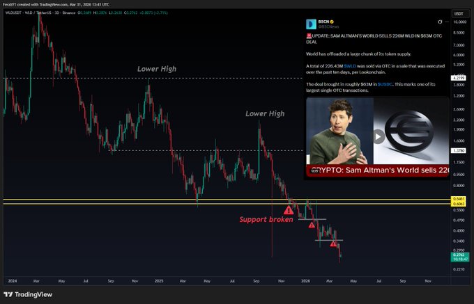 $WLD #WLD another Sam, another Scam .... World is heavily selling, 226m tokens sold for $63m