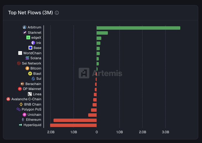 Killer Q4 net inflows to the land of liquidity (aka @arbitrum) app.artemisanalytics.com/flows