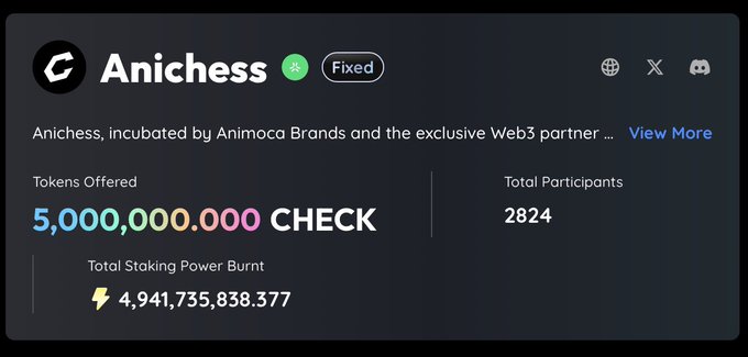 That’s a wrap! 🎉 4.9B Staking Power burned for $CHECK by 2.8K users in the @AnichessGame MocaDrop. $CHECK your allocation now! 👉 mocaverse.xyz/mocadrop/project...… For Moca holders, $CHECK tokens will be dropped directly on the Anichess website on Nov 13th afternoon. Stay tuned for twitter.com/Moca_Network/statu...