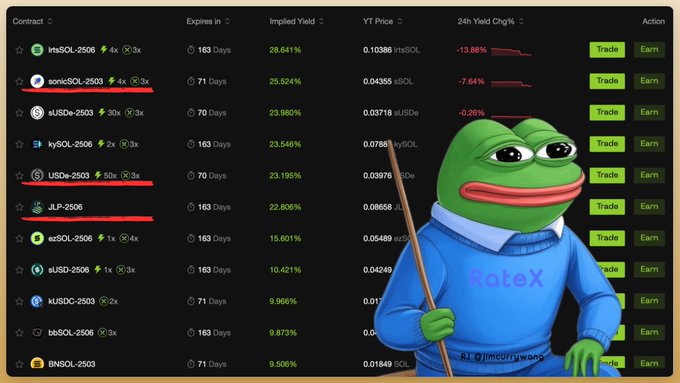 Here is the English translation: I have recently discovered another potential opportunity on Solana @RateX_Dex, which seems to have similar functions to <Pendle> and offers very attractive airdrop opportunities for early participants! Airdrop expectations + 3 high-yield participation methods, sharing with everyone 👇 app.rate-x.io/referral?ref=aQw... --- ► RateX is the first leveraged yield trading platform on Solana If this is not unfamiliar