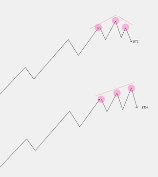 An indication when to be aware of a reversal, is when we see ETH leading in the market, and when I say leading, I mean structure-wise and not % wise.