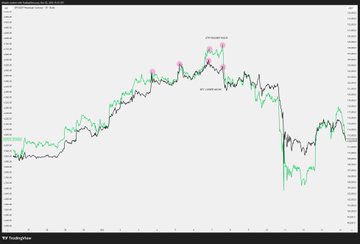 Check our ATH top back in October. Both ETH and BTC moving together, same structure, until Bitcoin forms a ltf lower high meanwhile ETH is still pushing.