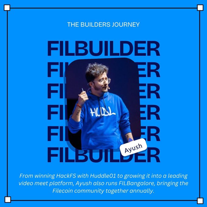 Ayush’s journey began with a win at the @ETHGlobal HackFS where he built @huddle01com, a project that has since grown into a powerful platform in the Filecoin ecosystem. He’s taken Huddle01 from hackathon project to industry leader, and he also runs FILBangalore annually,