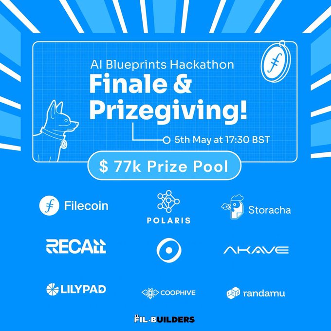 The D-Day is here! Finale of the @Filecoin AI Blueprints Hackathon is TODAY! 12 finalist demos. 60 groundbreaking projects. 550+ innovators. $77K prize pool. Get ready to witness the future of decentralized #AI!