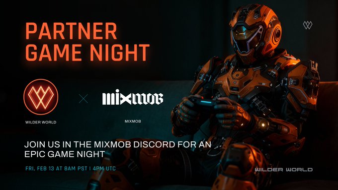 🎮MIXMOB GAME NIGHT: 1 HR AWAY🎮 📍 Location: MixMob Discord 🔗 MixMob DC: discord.gg/mixmob 🗓️ Time: 8AM PT/ 4PM UTC 🙌 Play, chat, and win some $WILD prizes when @WilderWorld Super Early Access teams up with @MixMobRacer1!