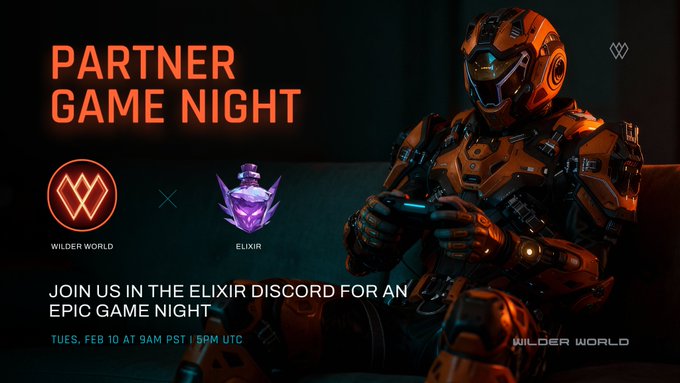 🎮ELIXIR GUILD GAME NIGHT: 1 HR AWAY🎮 📍 Location: Elixir Discord 🔗 Elixir DC: http:/discord.gg/elixirguild 🗓️ Time: 9AM PT/ 5PM UTC 🙌 Play, chat, and win some $WILD prizes when @WilderWorld Super Early Access teams up with @ElixirGuild!