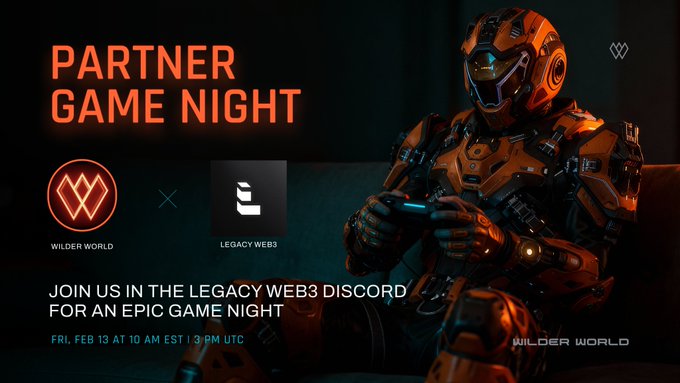 🎮LEGACY WEB3 GAME NIGHT: 1 HR AWAY🎮 📍 Location: Legacy Web3 Discord 🔗 Legacy Web3 DC: http:/discord.gg/legacyweb3 🗓️ Time: 10AM ET/ 3PM UTC 🙌 Play, chat, and win some $WILD prizes when @WilderWorld Super Early Access teams up with @LegacyWeb3io!