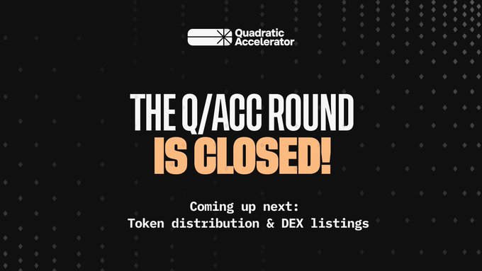 The q/acc round is officially closed! Big thanks to everyone who participated — and congrats to all the founders and projects who launched with us. What’s coming next week: 🔹 Token distributions (check your account at http:/q-acc.giveth.io) 🎯 @layer3xyz q/acc point boosts